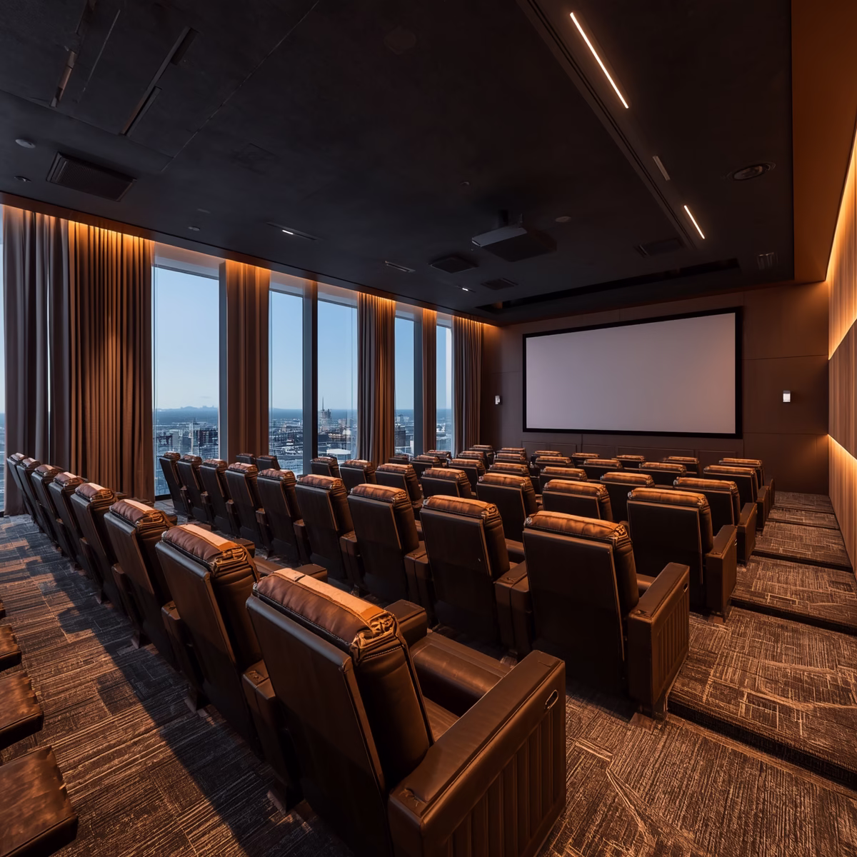 An Office Cinema integrates a Dolby 9.2 surround sound system, creating an immersive audio environment that ensures clarity, depth, and consistency across the entire space.
